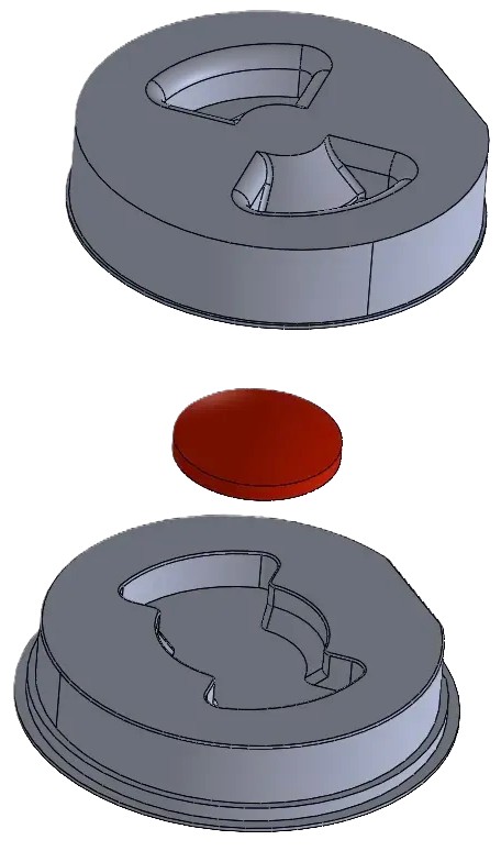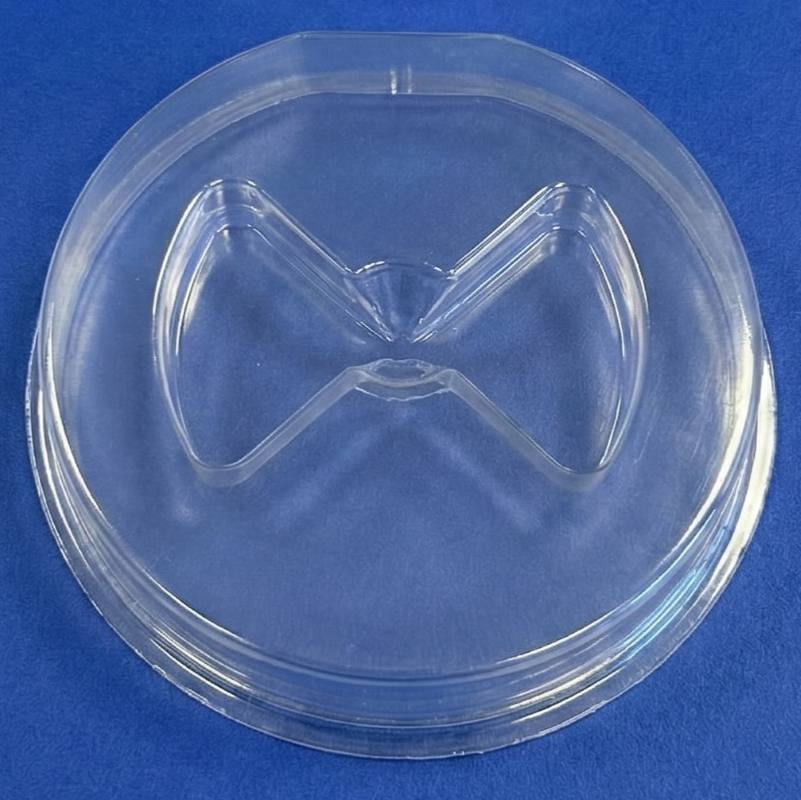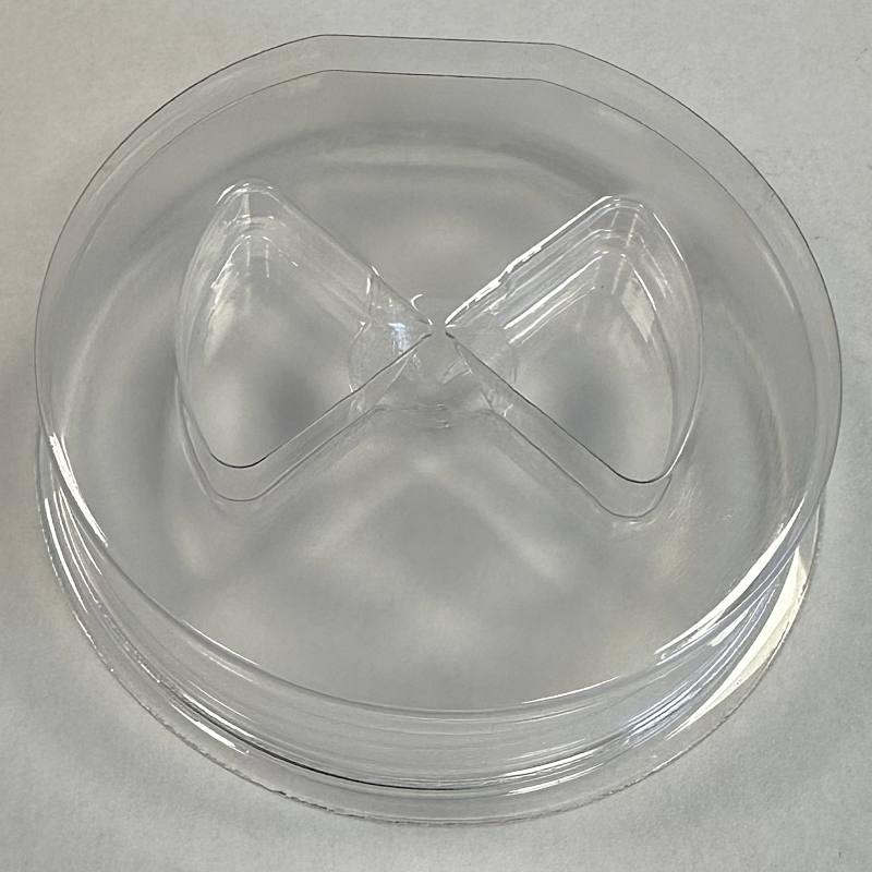 Static Dissipative Optics Tray with single cavity. This is a tray and cover set. Overall tray size is 3.13″ diameter