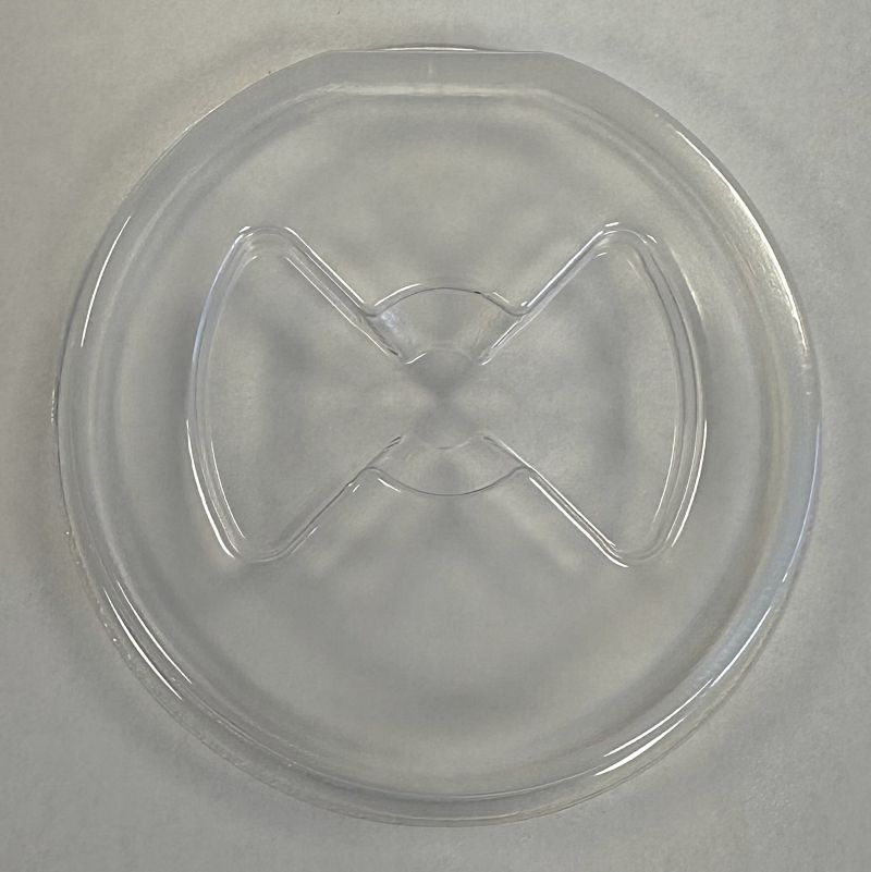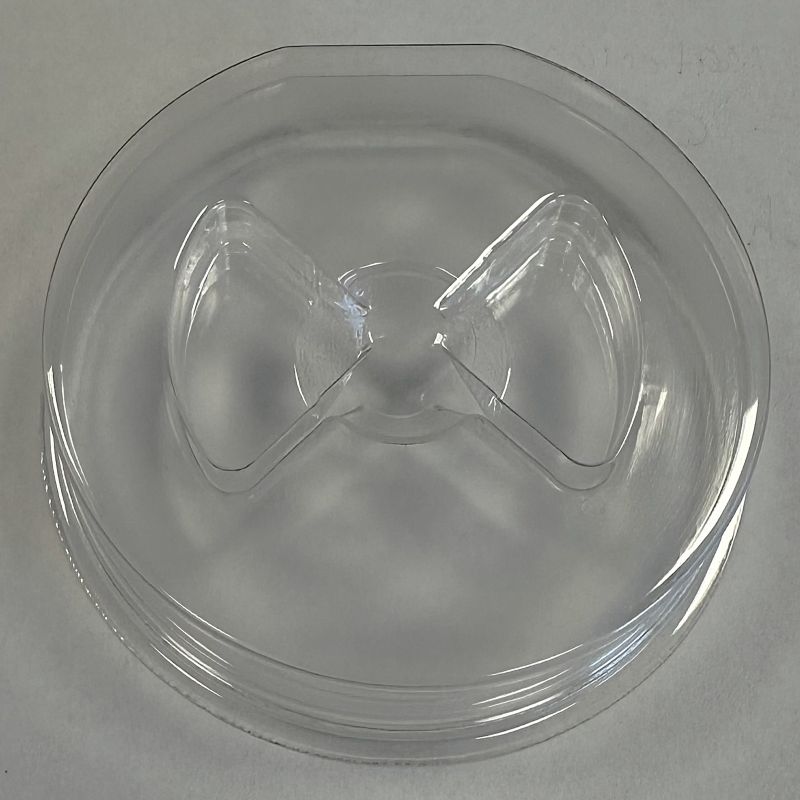 Static Dissipative Optics Tray with single cavity. This is a tray and cover set. Overall tray size is 3.13″ diameter
