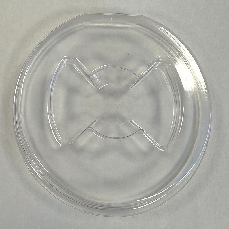 Static Dissipative Optics Tray with single cavity. This is a tray and cover set. Overall tray size is 3.13″ diameter
